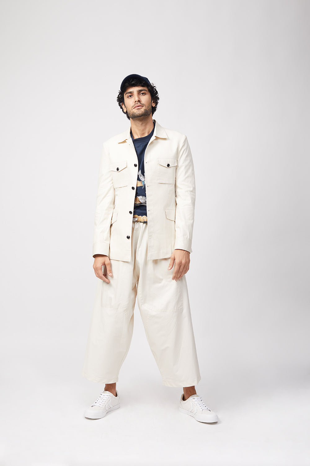 • A Season Essential piece, this shacket is perfect for an urban luxe look. It comes with 4 patch pockets and 5 button closure, with no lining construction to keep it light weight. Made from lightweight cotton.